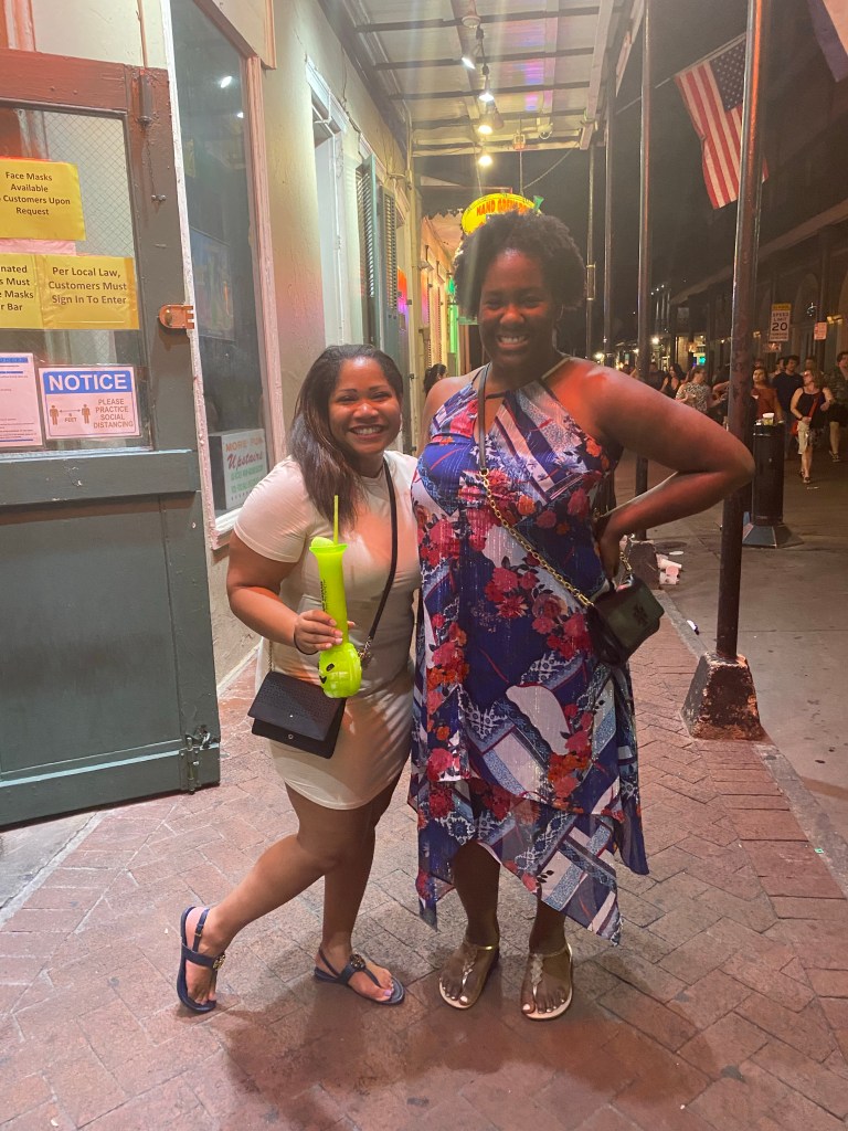 The food was absolutely delicious… So of course we left stuffed. and we decided to walk around Bourbon Street and figure out our bearings for the first night. We just knew we had to walk some of this food off. We ended up realizing the Bourbon Street was a long strip with a lot of bars playing awesome music… And we love to dance 💃🏽!