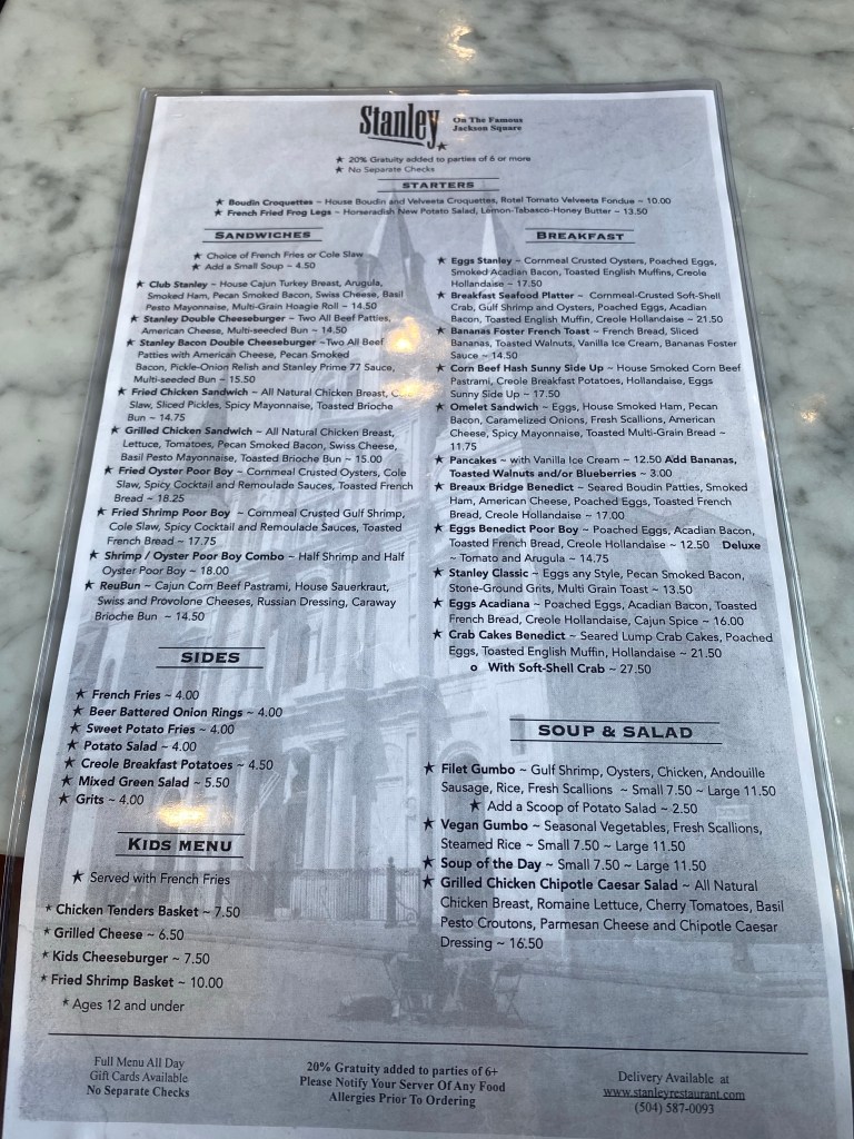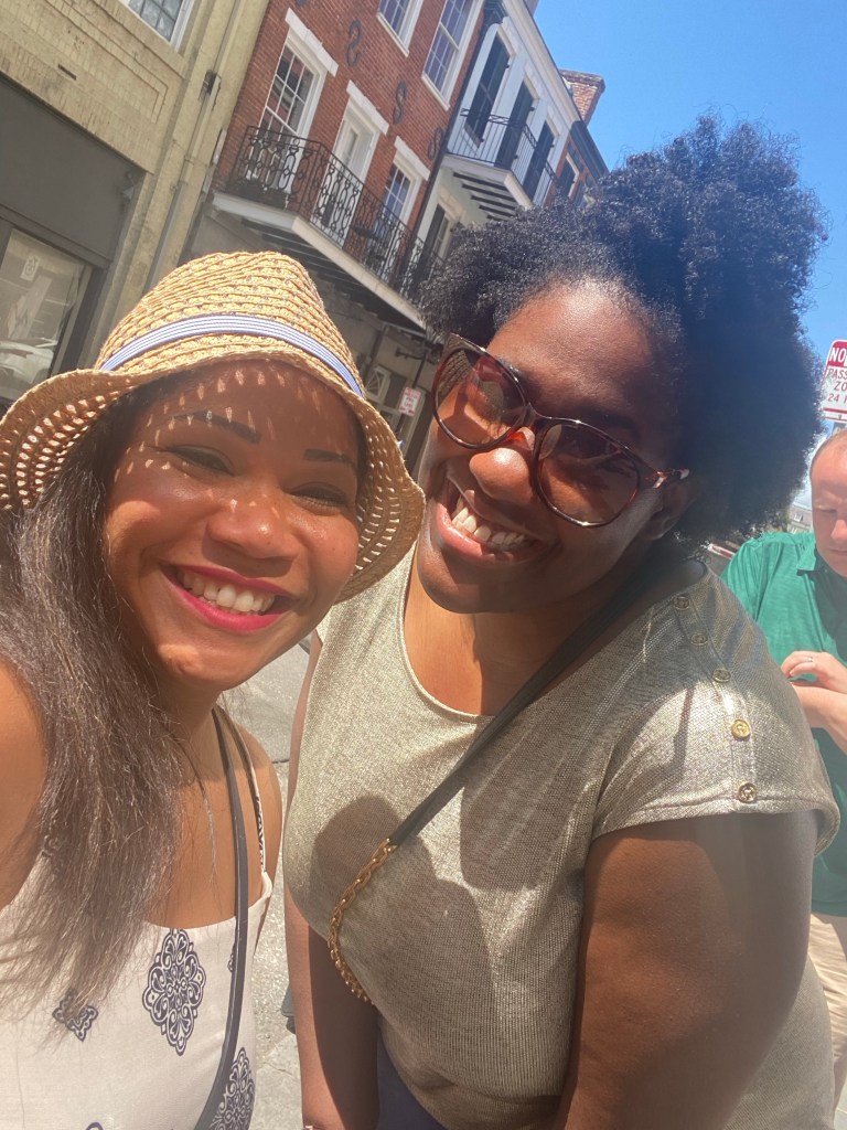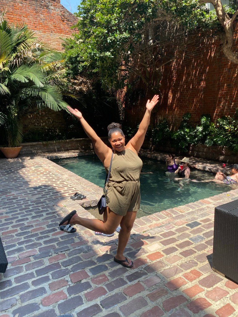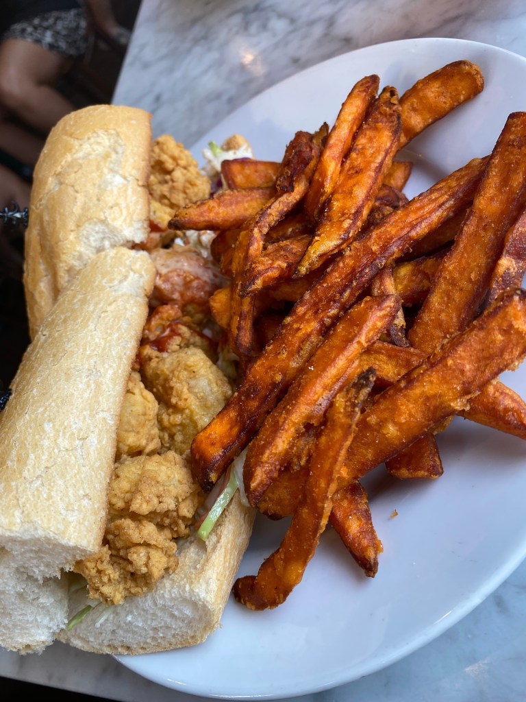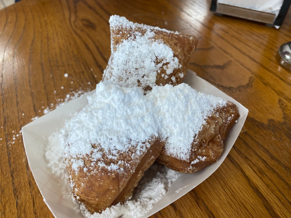 Today was our final day in Nola… We decided to go walk around the town a little bit more. We walked to Jackson square and watched a magic show. Can I say that guy came ready to perform and get money… He had a Cash App and a Venmo ready and available just in case people didn’t carry cash! We had a nice brunch at Stanley! I didn’t want to leave without trying a Poboy… So I got the shrimp Poboy with sweet potato fries. I was kind of bummed that we didn’t have a chance to get in the pool at our hotel… We had a really nice hotel with a really nice outside patio– but we just stayed so busy the entire time but we quickly grabbed a few shots by the pool before we left! I would say we made the most out of our time in New Orleans and I would definitely want to return. Trip highlight was tasting beignets at Loretta’s pralines!!