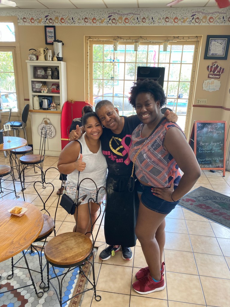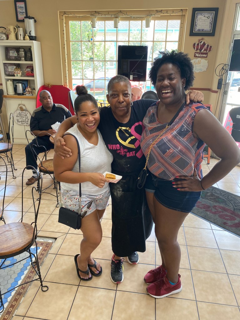 We got lucky because Miss Loretta was there and she gave an inspirational speech saying to basically follow your dreams… She told us how the recipes were passed down from generation to generation and her family it was truly touching. She even took a picture with us! Jazz and I didn’t know what beignets to get so we got a variety lol we had the traditional beignet with powdered sugar then we got a crawfish beignet and a Crab beignet… I was debating on getting a chocolate beignet to but I didn’t want to be too greedy we had a long walk back lol!