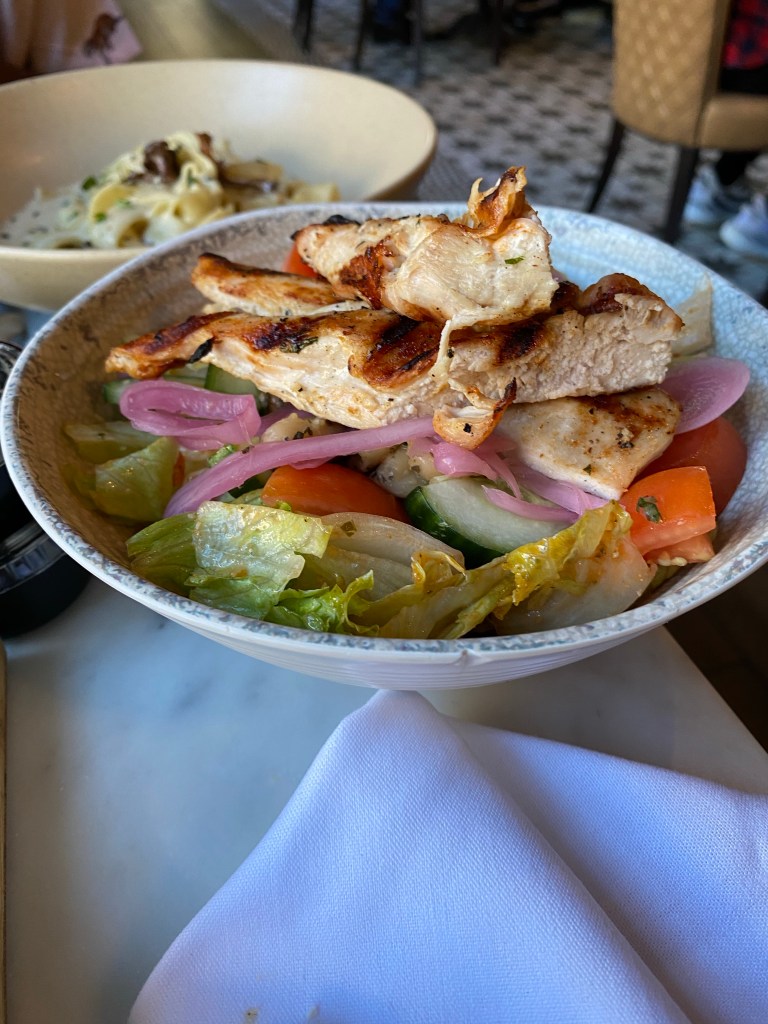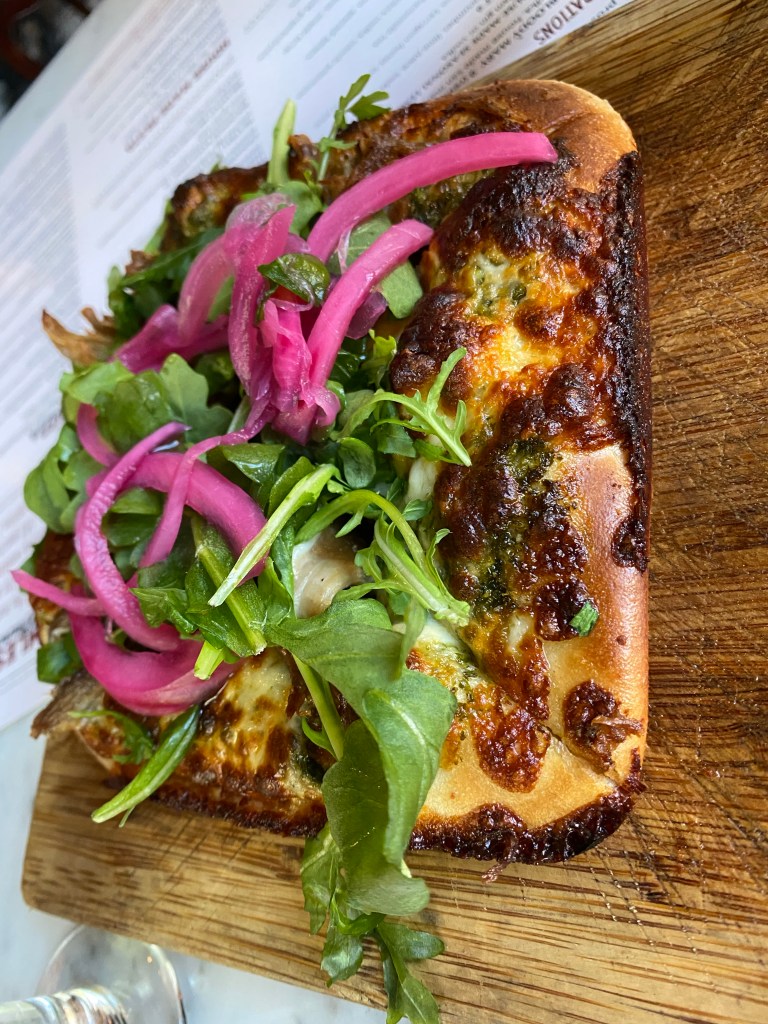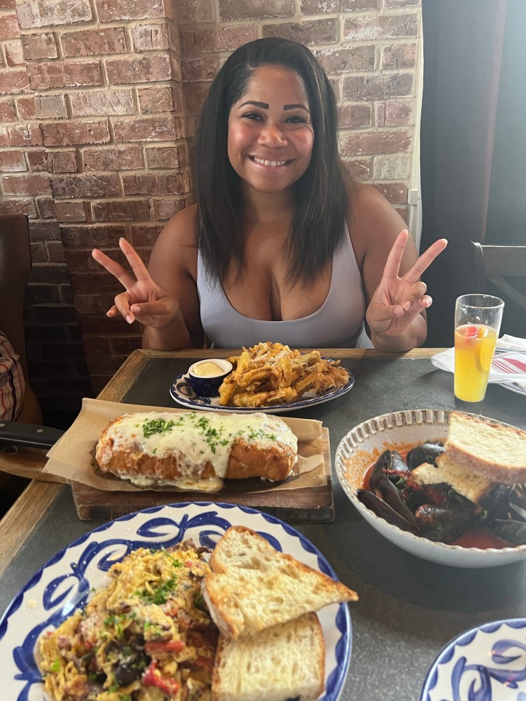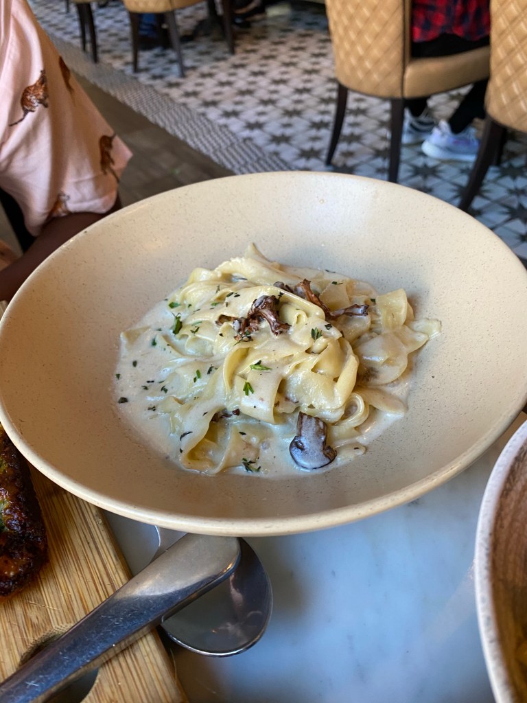 We tried several types of pasta (FETTUCCINE AI FUNGHI, NONNA’S SUNDAY GRAVY) and pizza (MARGHERITA, prosciutto and fig minus the prosciutto), A bunch of the specialty brunch dishes (mussels, zucchini fries, salad, PANE AL FORMAGGIO, ITALIAN SCRAMBLE) and some sweet treats (cinnamon raisin Italian toast, doughnuts)! Of course we tried the cocktails lol ! We tried a couple other things that I don’t see listed on the menu… I think they rotate their menu items (possibly seasonally)!