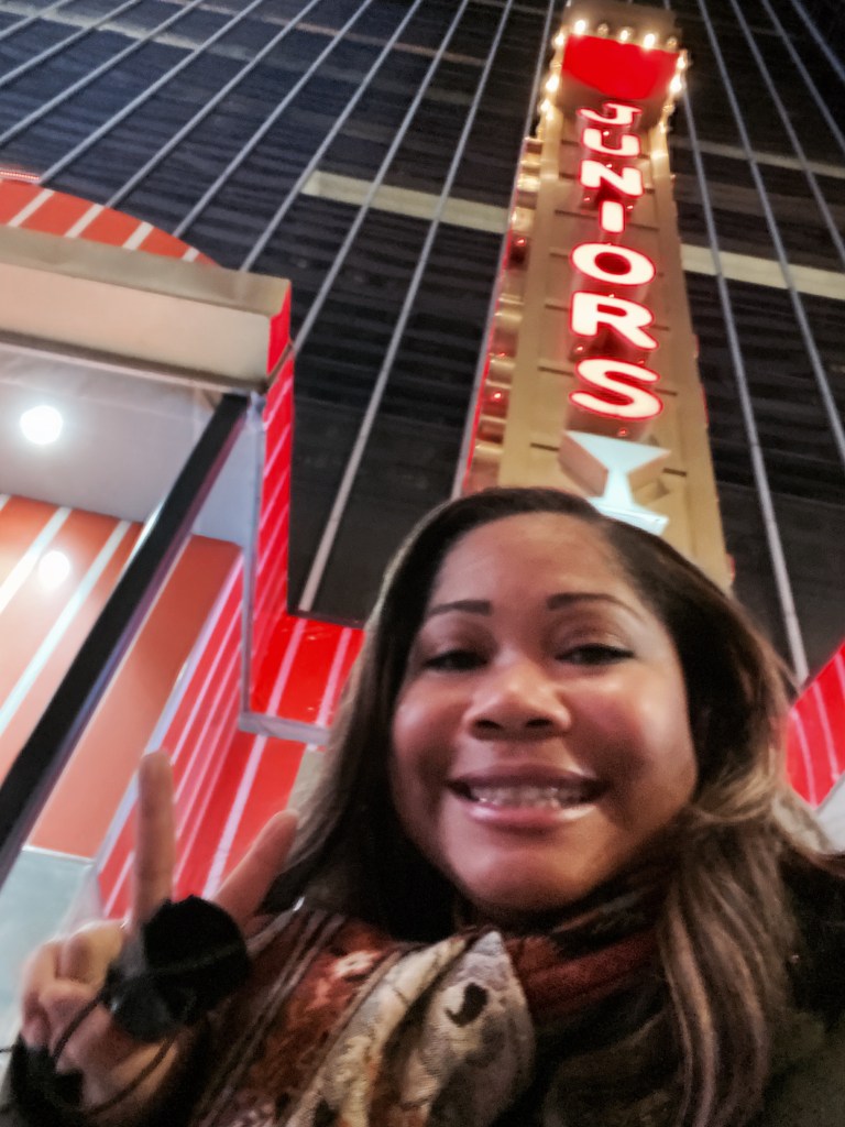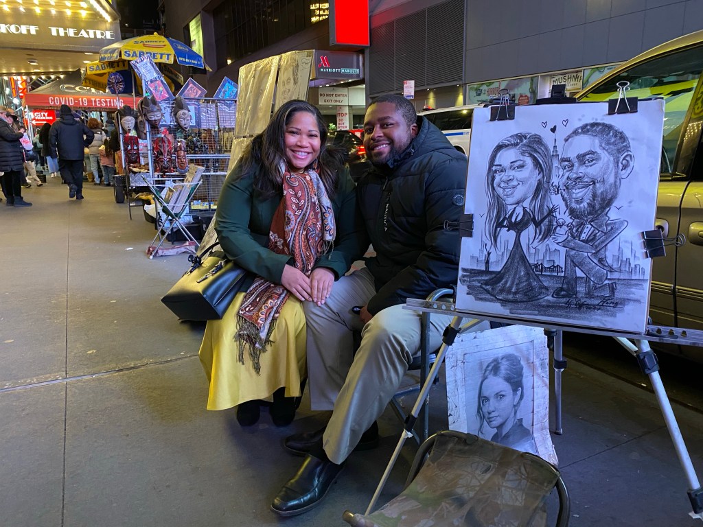 After dinner we had a caricatures drawn while we froze a little bit in the city haha! It was a crisp, chilly night! But also so magical ✨!! We ended the night with a few slices of cheesecake from Juniors! All I’m going to say is- if you haven’t been to Juniors, you’re missing out! Best Professional Cheesecake I’ve tasted yet!
