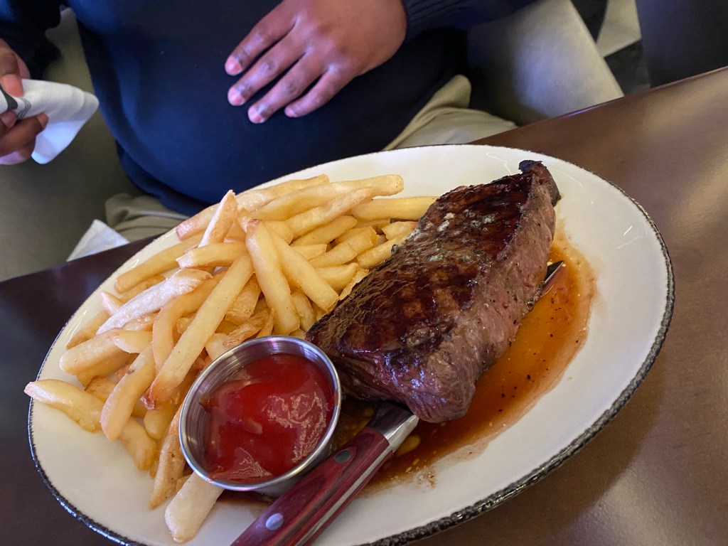 We had the Fig salad for appetizer which was sweet and earthy … so delicious the way the flavors came together. According to babe the steak and fries were good. The steak was prepared the way he requested- tender and juicy 🤤!